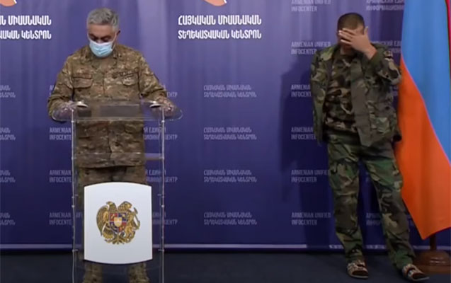 MN rəsmisi onun yaralı hərbçi kimi təqdim etsə də, üzündən olduqca yorğun və bitkin görünən həmin şəxsin məcbur konfransa gətirilərək “yenilməz” Ermənistan ordusunun siması kimi danışdırılması düşmən tərəfinin nə qədər rəzil durumda olduğunu bir daha əyani göstərmiş olub.