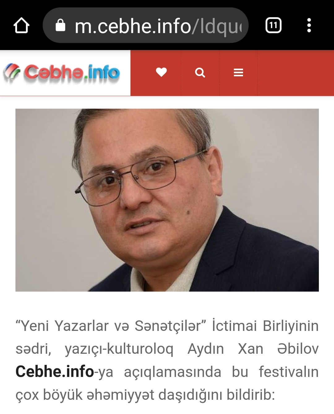 Yeni Yazarlar və Sənətçilər İctimai Birliyinin sədri, Vətəndaş Cəmiyyəti Alyansının rəhbəri, yazıçı-kulturoloq Aydın Xan Əbilov Cebhe.info-ya açıqlamasında bu festivalın çox böyük əhəmiyyət daşıdığını bildirib