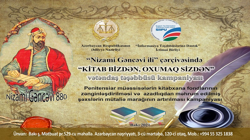Məhkumların bilik və dünyagörüşlərinin artırılması, asudə vaxtlarını daha səmərəli keçirmələri üçün “İnformasiya Təşəbbüslərinə Dəstək” ictimai birliyi Ədliyyə Nazirliyi ilə birgə 2021-ci il “Nizami Gəncəvi İli” çərçivəsində “Kitab bizdən, oxumaq sizdən” devizi altında vətəndaş təşəbbüsü kampaniyasına start verir.
