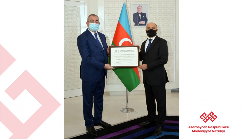 UNESCO Siyahısına daxil olmuş 4 elementin sertifikatları mədəniyyət naziri Anar Kərimova təqdim edilib
