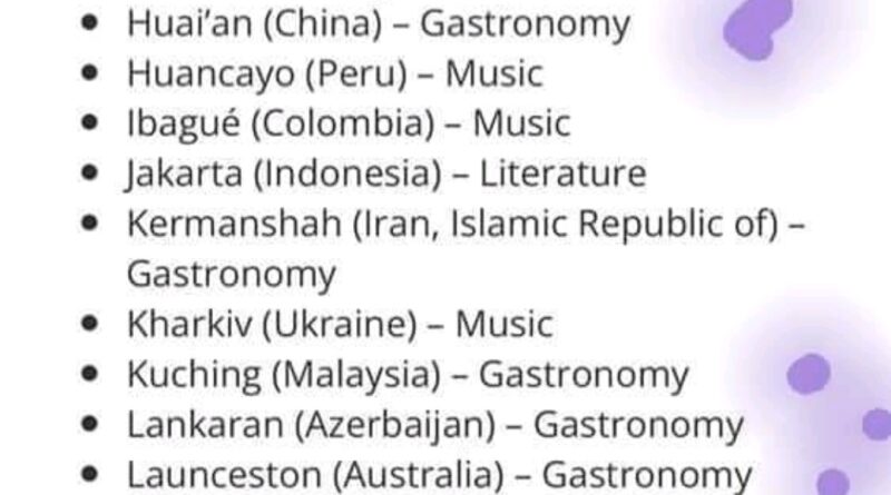 UNESCO-nun baş direktoru Odre Azulenin qərarı ilə “Yaradıcı şəhərlər şəbəkəsi” siyahısına 49 şəhər daxil edilib.
