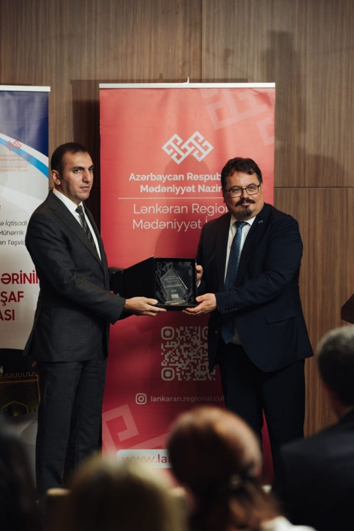 Çıxışının sonunda layihənin tərəfdaşlarına təşəkkürünü bildirən Peter Mixalko layihənin simvolik kubokunu Lənkəran Regional Mədəniyyət İdarəsinin rəisi Şahin Şahbazova təqdim etdi.