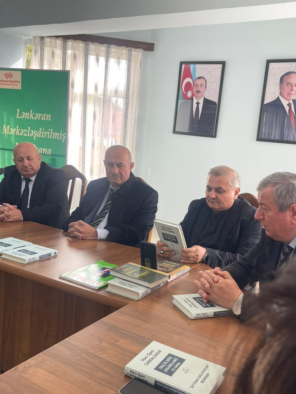 Sonra nasirin yenicə çapdan çıxmış 15 cildlik “Seçilmiş əsərləri”nin 6 cildini və başqa kitablarını Lənkəran Mərkəzi Kitabxanasına hədiyyə edib, xatirə şəkilləri çəkdirilib.
