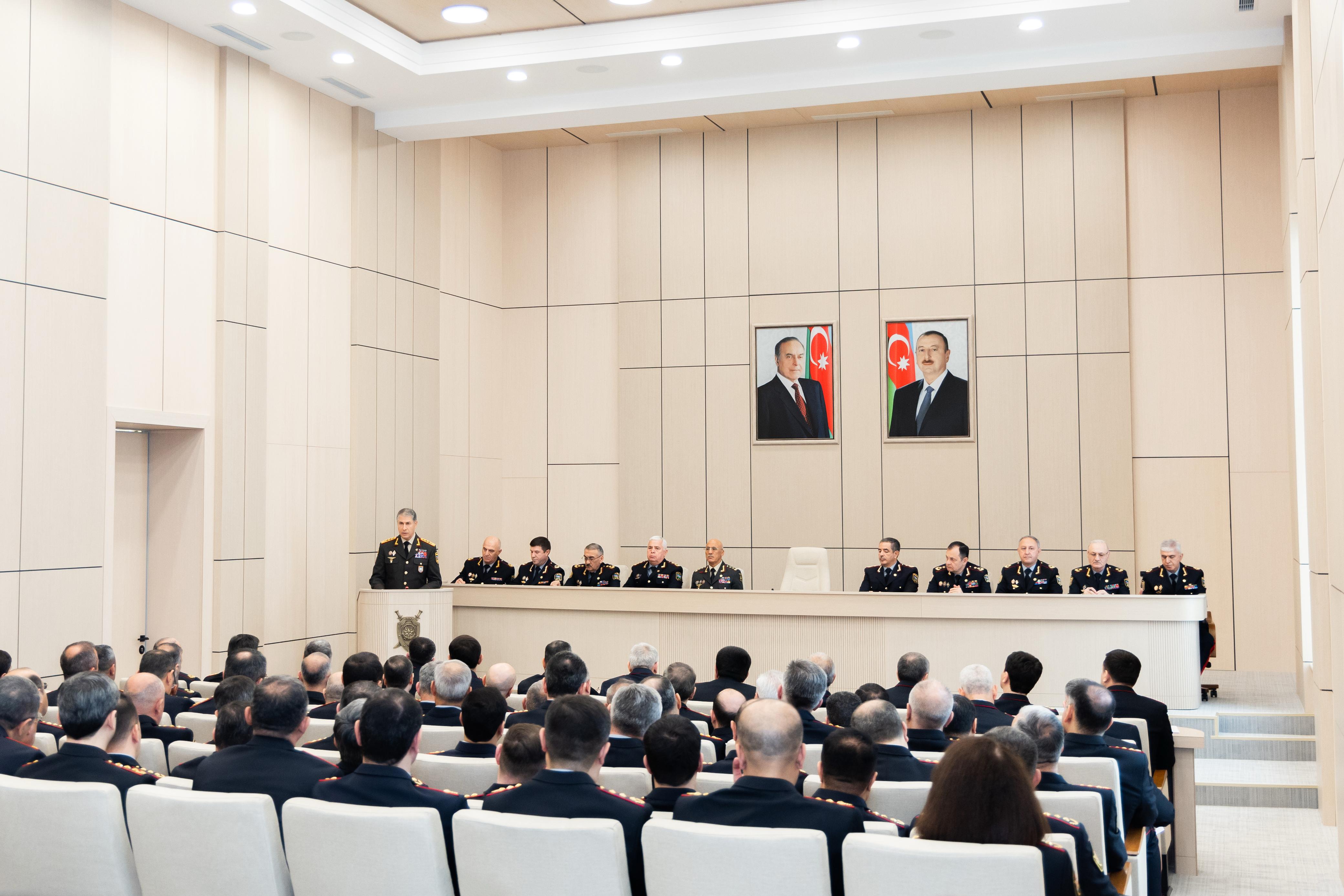 Daha sonra gündəlikdəki məsələlərlə bağlı Nazirliyin Baş idarə, idarə və ərazi polis orqanlarının rəislərinin görülmüş işlər, əldə olunmuş nəticələr, mövcud nöqsan və çatışmazlıqların aradan qaldırılması üzrə həyata keçirilən tədbirlər barədə çıxışları dinlənilib.